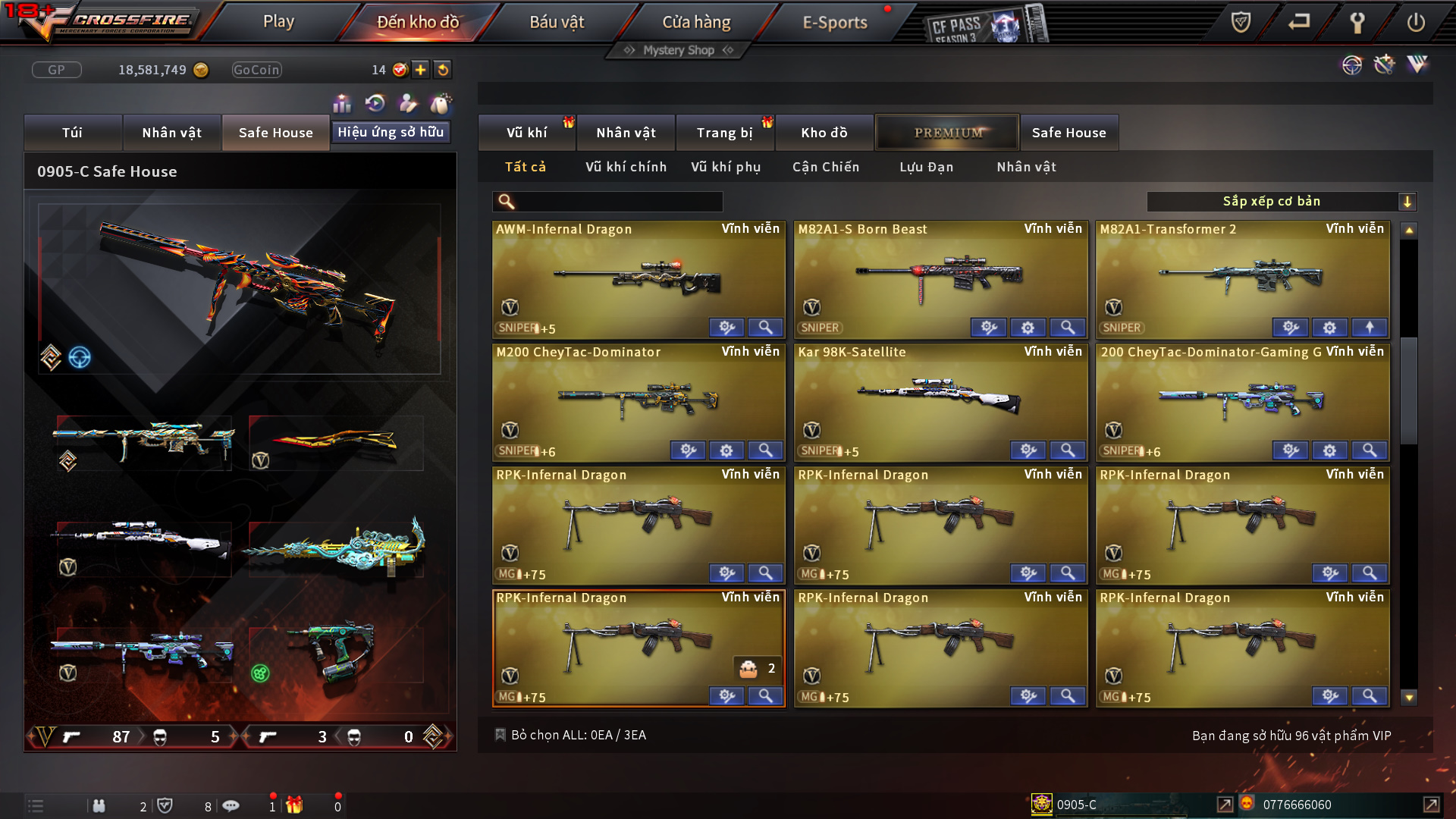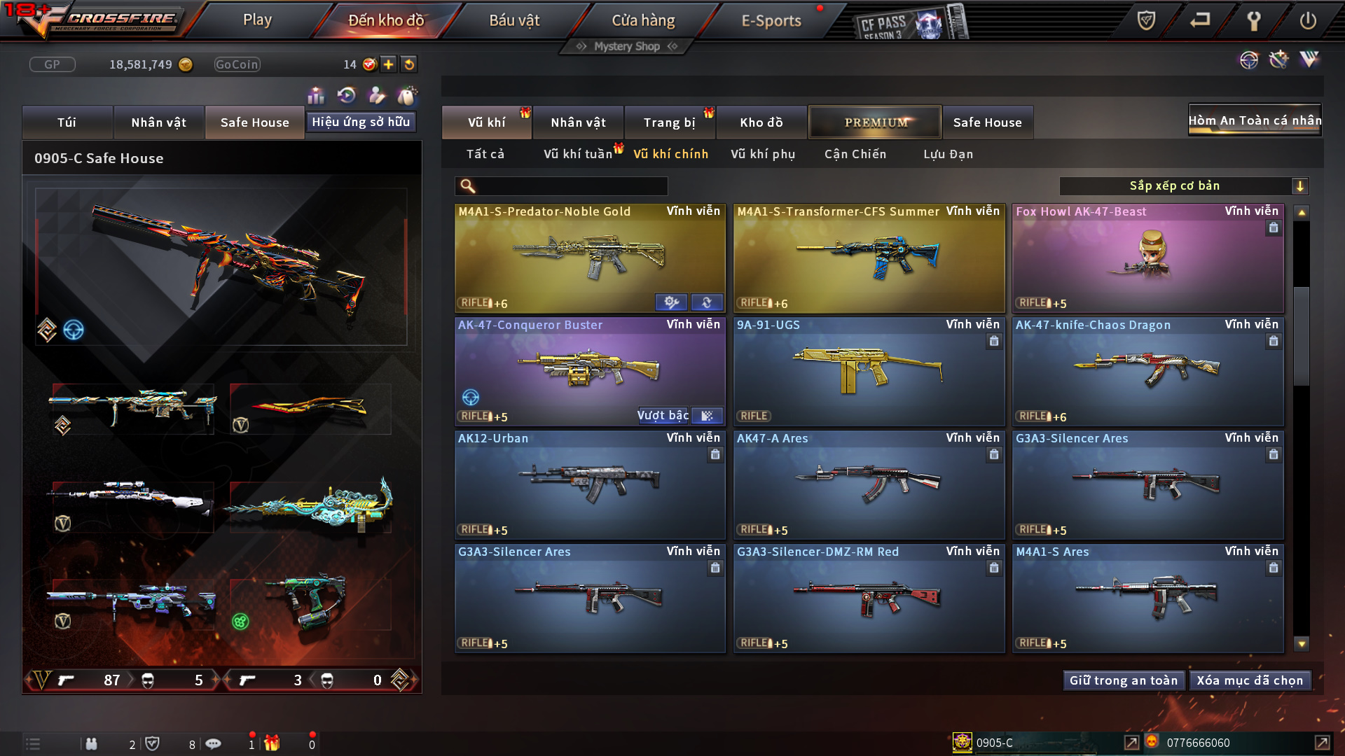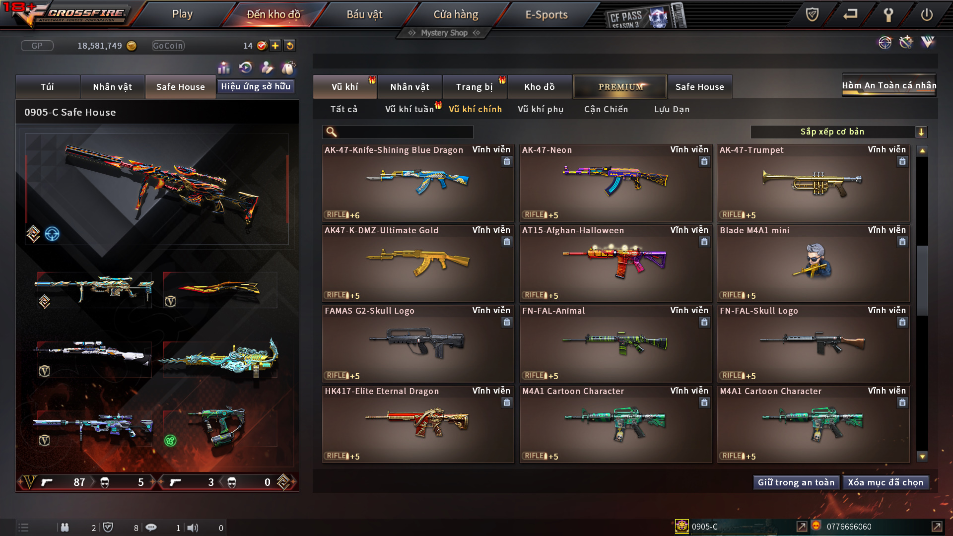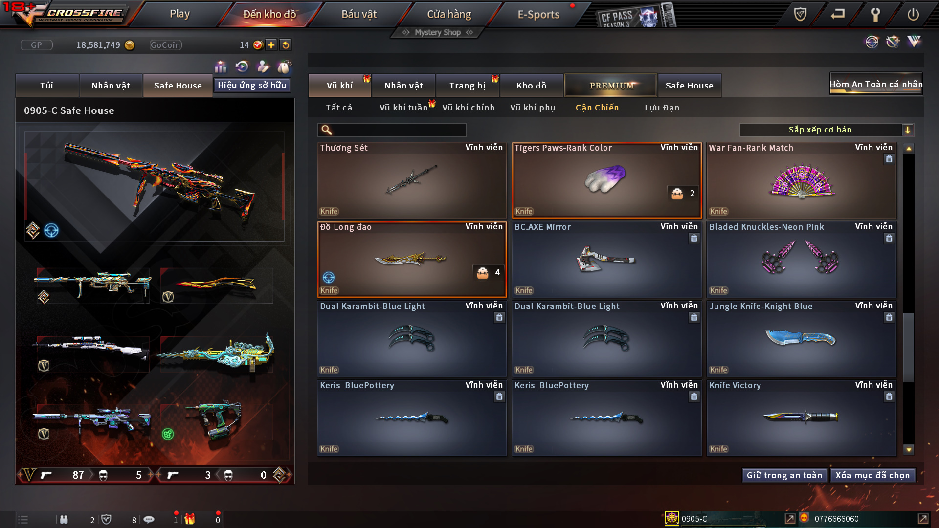 Hình ảnh chi tiết của tài khoản Đột kích #1184