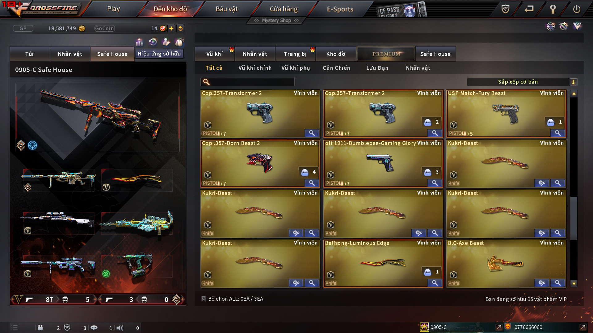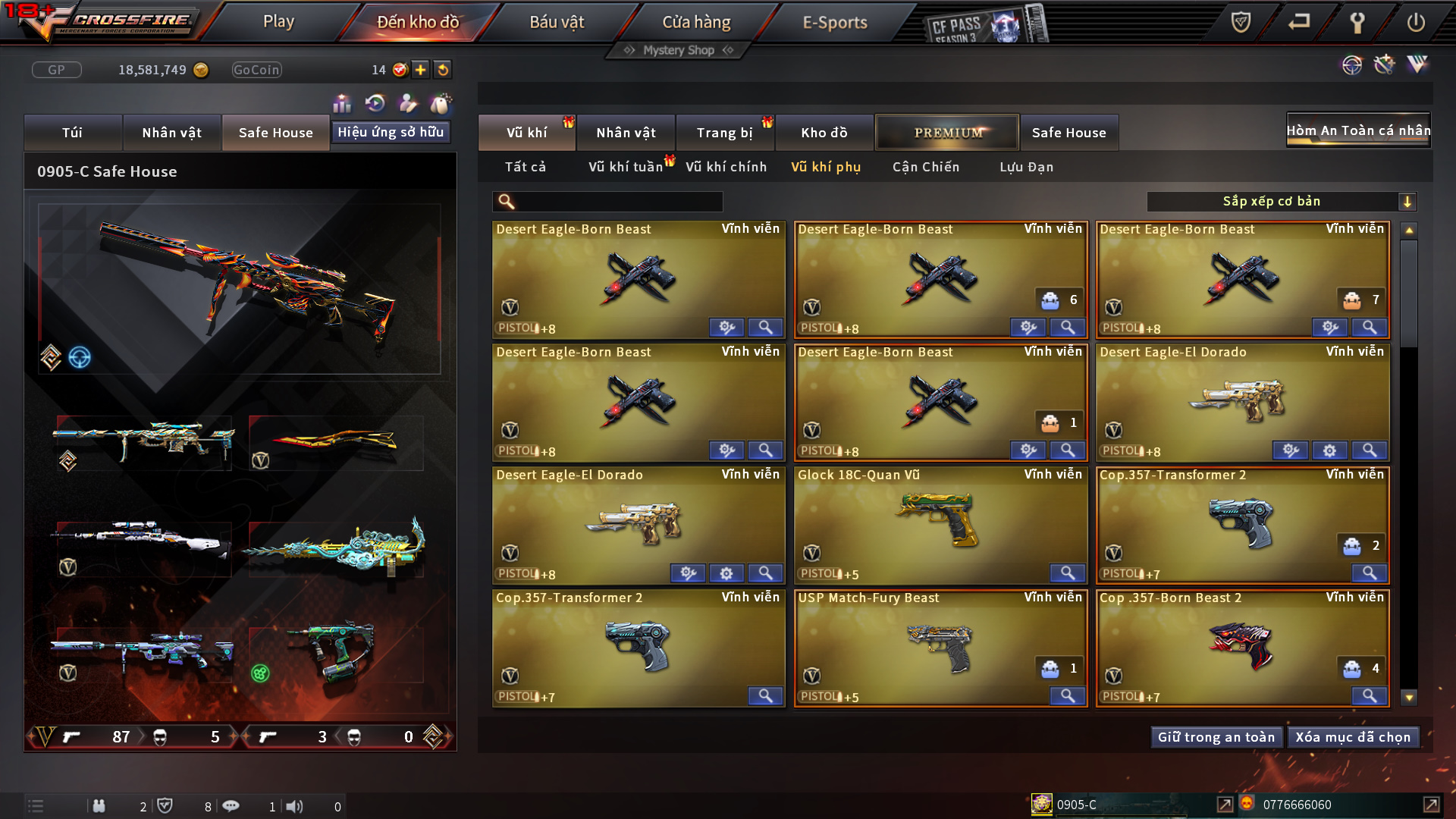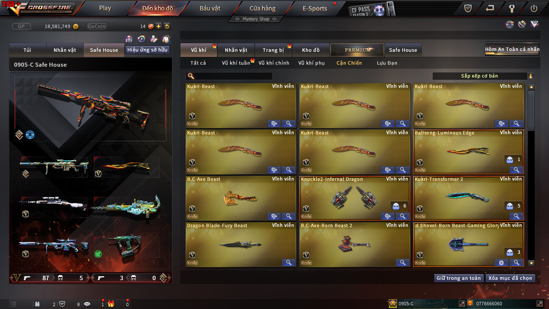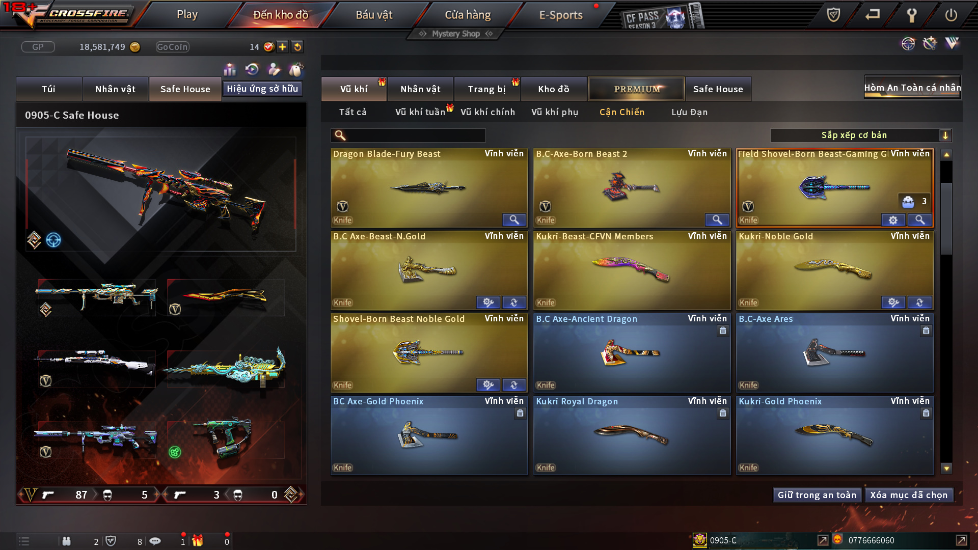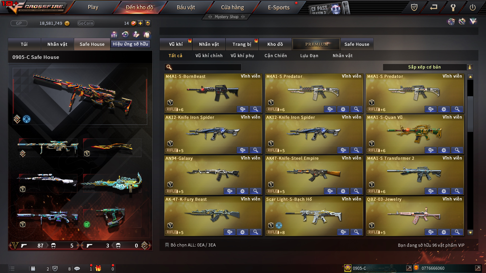 Hình ảnh chi tiết của tài khoản Đột kích #1184